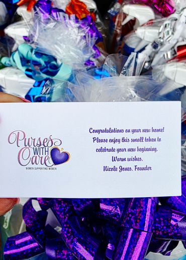 Purses with Care is an organization that collects new/gently used purses or reusable bags filled with toiletries to distribute in the community. PWC will donate in numerous ways such as donating to the homeless, shelters, mothers of premature babies, young women in foster care and etc.
